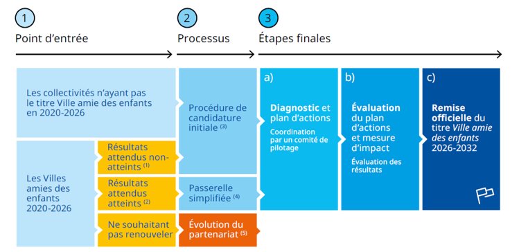 Le cadre méthodologie propre au programme Ville amie des enfants, ne s’applique pas pour les villes membres du réseau Territoires d’enfance.